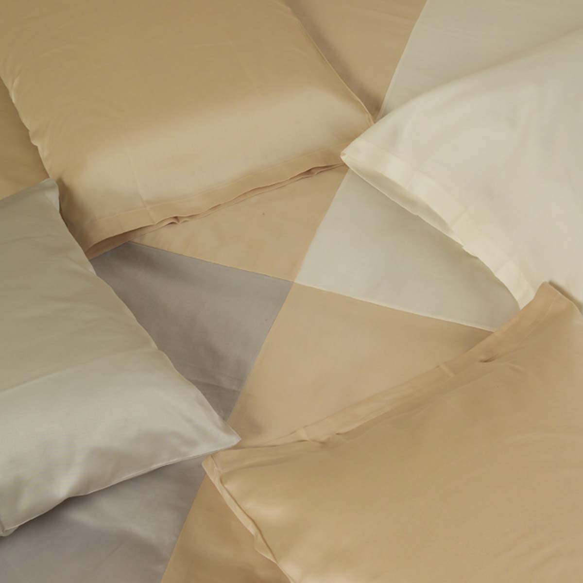 Copripiumino in percalle di cotone con motivo geometrico a blocchi, disponibile in 4 varianti colore.
